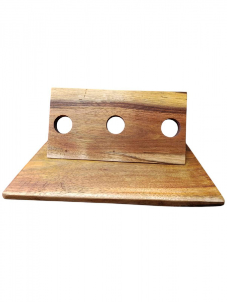 A stylish/ Rustic and sturdy blackwood stand designed to hold three bottles of wine, whiskey, vodka, or any favorite spirit. Perfect for showcasing bottles elegantly on a countertop, bar, or shelf. Handcrafted with a natural finish to highlight the rich grain of blackwood.