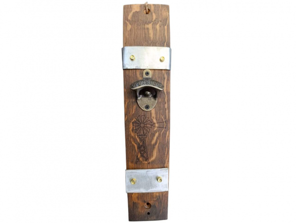 Handcrafted from beautiful Oak Barrel wood, each wall-mounted bottle opener.
