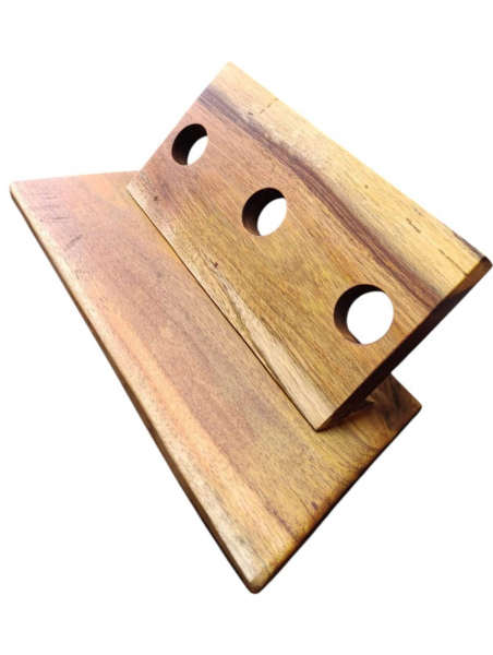 A stylish/ Rustic and sturdy blackwood stand designed to hold three bottles of wine, whiskey, vodka, or any favorite spirit. Perfect for showcasing bottles elegantly on a countertop, bar, or shelf. Handcrafted with a natural finish to highlight the rich grain of blackwood.